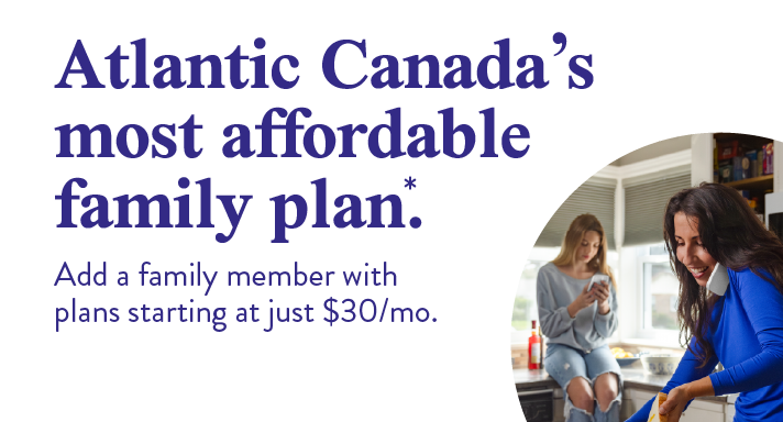 *Current as of January 6, 2026. “Atlantic Canada’s/Northern Ontario’s/Grande Prairie’s most affordable family plan” statement based on the monthly mobile rate plan price of Eastlink’s lowest-priced shared Rollover Data plan for two or more mobile lines shared on a single account, after pre-authorized payment discounts and additional mobile line discount. Monthly rate plan prices compared against advertised monthly rate of lowest-priced shareable data plans with data and voice, available directly from postpaid mobile service providers in the relevant area where Eastlink provides Mobile service. “Mobile service providers” does not include third-party retailers or authorized dealers. Price comparison is based on residential customer mobile rate plan pricing for two or more mobile lines shared on a single account advertised prominently on mobile service providers’ website or retail channels, including shared mobile line discounts, but before any additional credits such bundle discounts. Pricing reviews are completed by Eastlink by noon AST on regular business days (Monday – Friday). If competitive rate plan pricing changes after 4:00PM AST or during non-business hours, Eastlink does not guarantee to have the price of Eastlink’s lowest-priced shared Rollover Data plan for two or more mobile lines shared on a single account reduced the following business day. Credits will not be applied for purchases made prior to any price reduction. Offer valid for a limited time, while supplies last and subject to change without notice.
